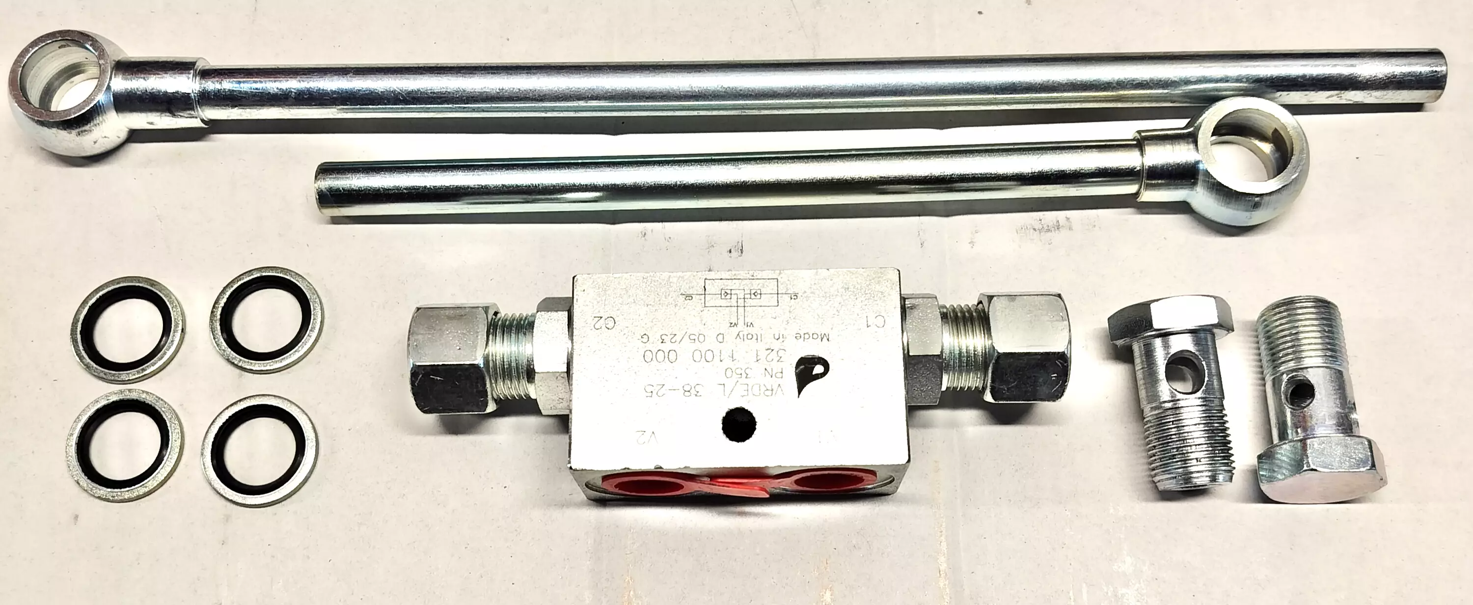 Kaksoislukkoventtiilisarja sisältää tarvittavat osat lukkoventtiilin ja sylinterin yhteen liittämiseksi. Sarja ei sisällä hydrauliletkuja.
