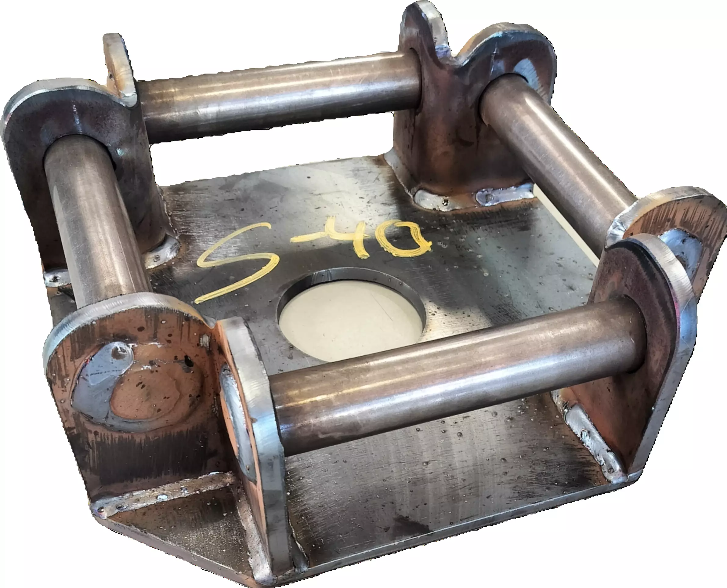 S-40 vastalevy mallia köyhän miehen Engcon. Samassa kiinnikkeessä kaksi vastalevyä niin että kauhan voi ottaa kiinni myös poikittain. 40mm akselit, sisäleveys 200mm tappien välinen etäisyys 300mm.