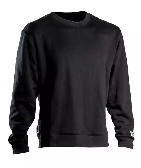 Musta collegepaita, johon saa hyvin painettua yrityksen logot. Pehmeä laadukas kangas tuntuu hyvältä käytössä niin töissä kuin vapaa-ajalla. Paidan mitoitus on rennon väljä.