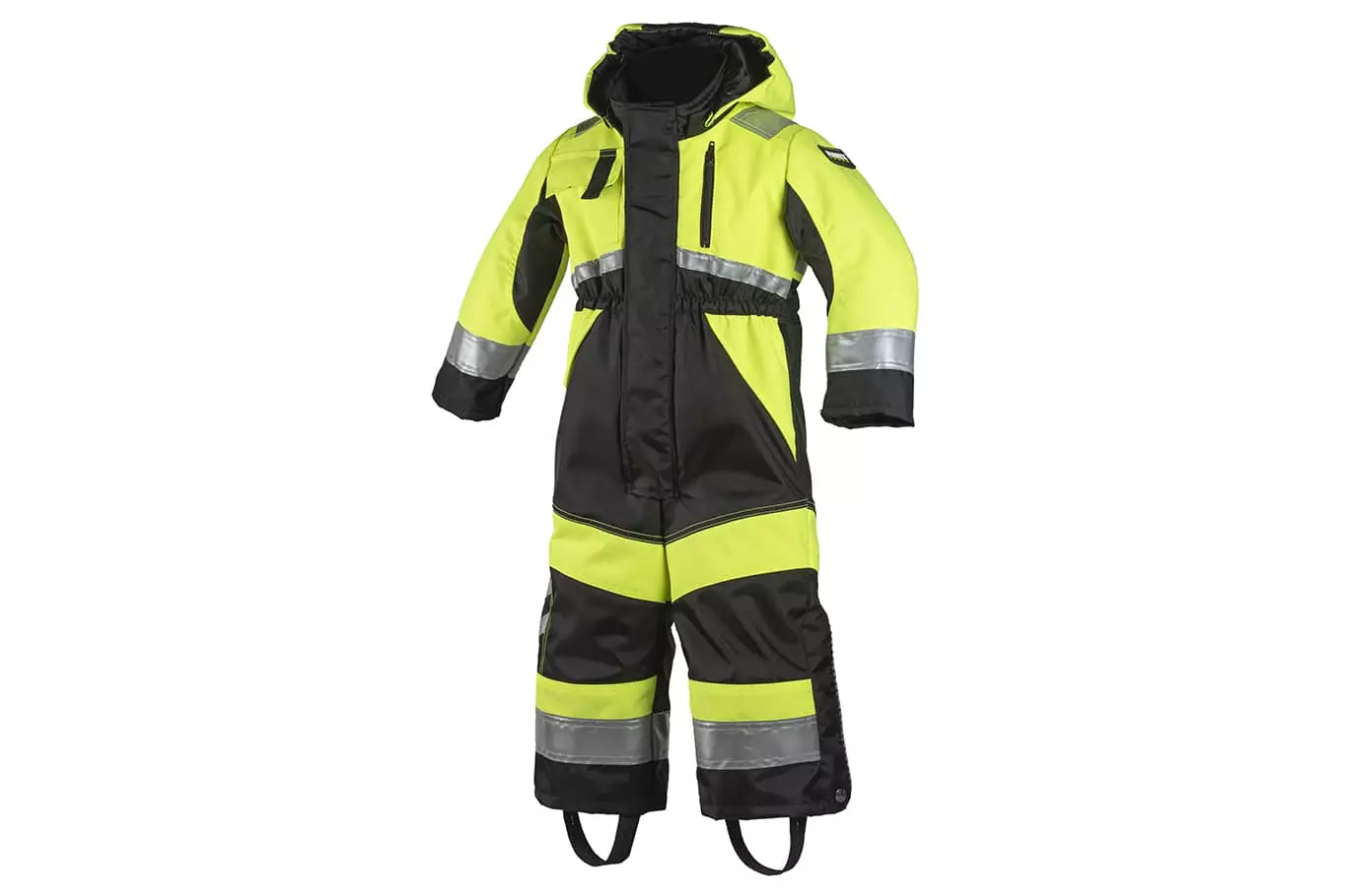 Haalarissa on vetoketjullinen etutasku oikealla puolella.