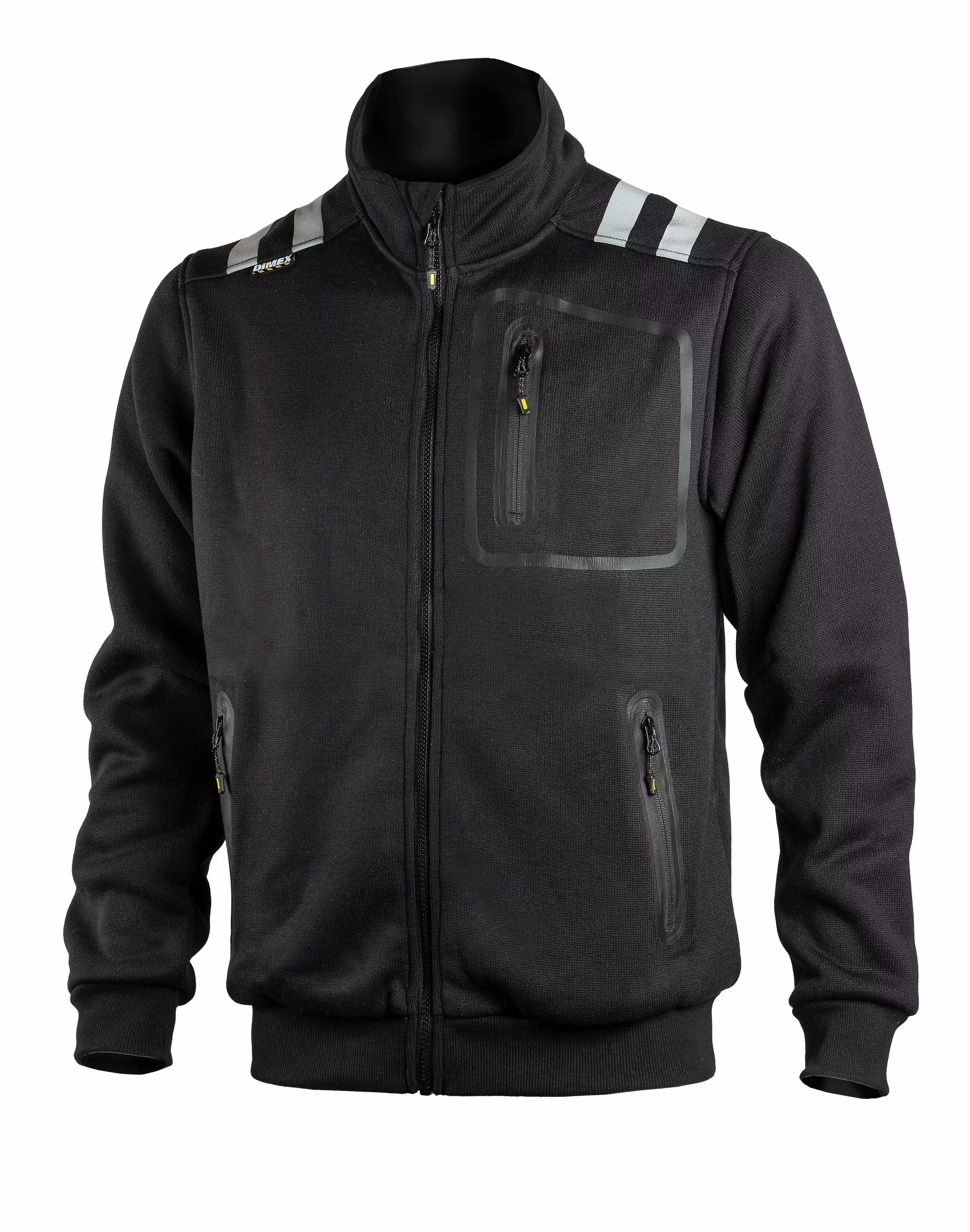 Tässä mustassa neulostakissa on Dimexin tuotteille tyypillistä särmää ja ryhtiä.